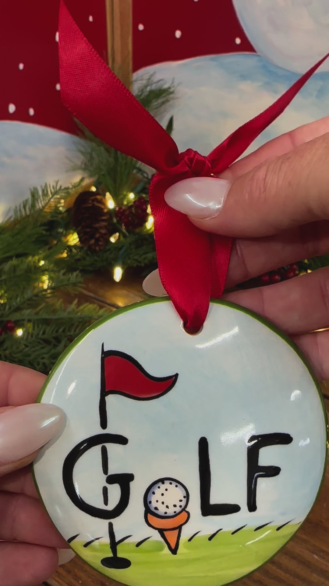 Our hand‑painted Golf ornament features a golf ball and tee design, perfect for players, fans, and anyone who loves time on the green. This fun and sporty ornament brings a touch of the fairway to your Christmas tree.