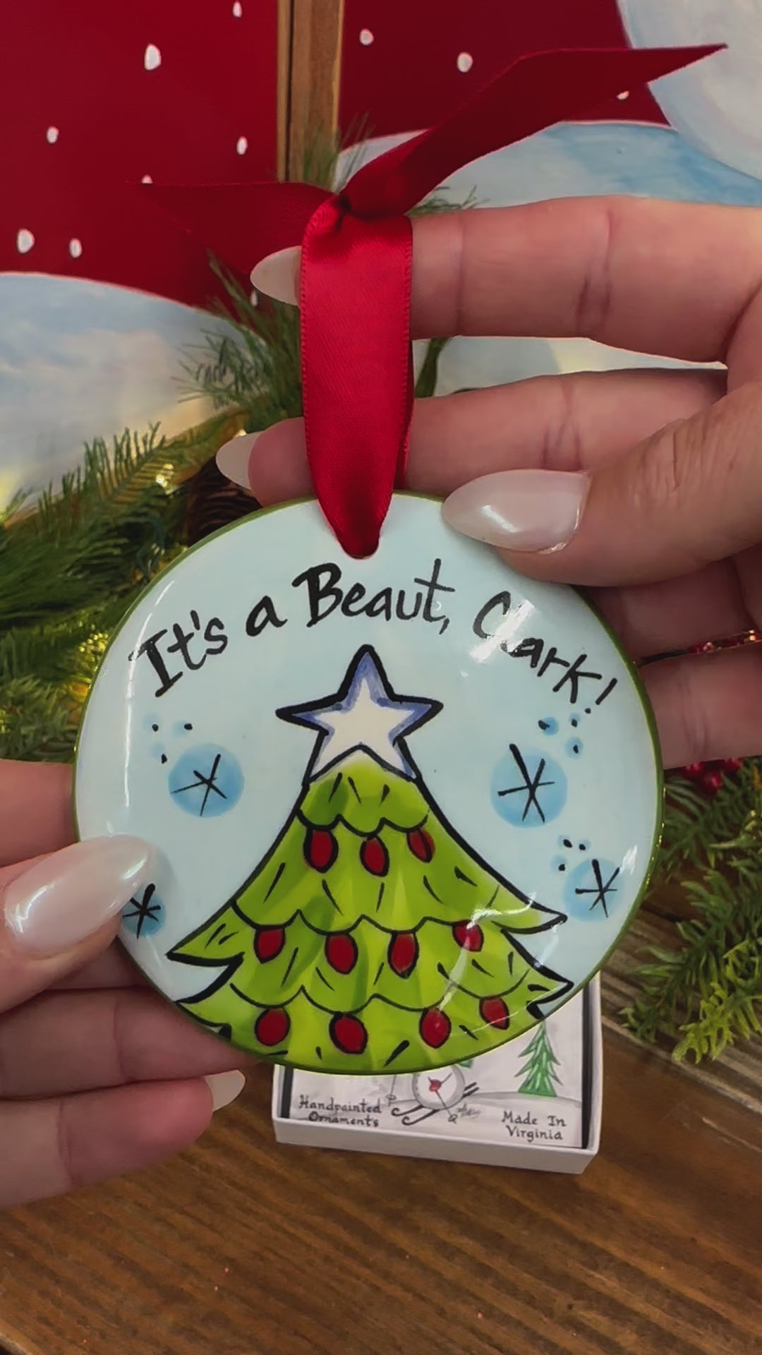 Our hand‑painted It’s a Beaut, Clark ornament features the classic holiday movie quote we all know and love, paired with festive details to make any fan smile. This playful design is perfect for anyone who loves a good laugh with their Christmas cheer.
