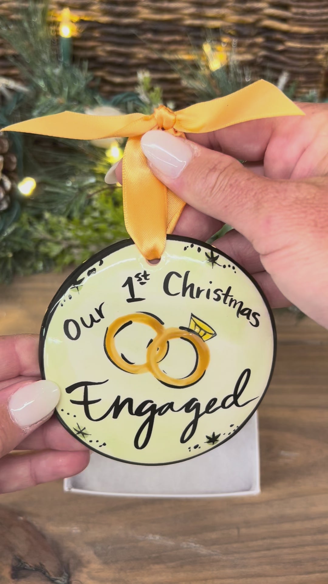 Our hand‑painted Our First Christmas Engaged ornament features elegant lettering and a charming design to commemorate this unforgettable milestone. Perfect for marking the beginning of a lifetime together, this ornament brings love and sparkle to your holiday décor.