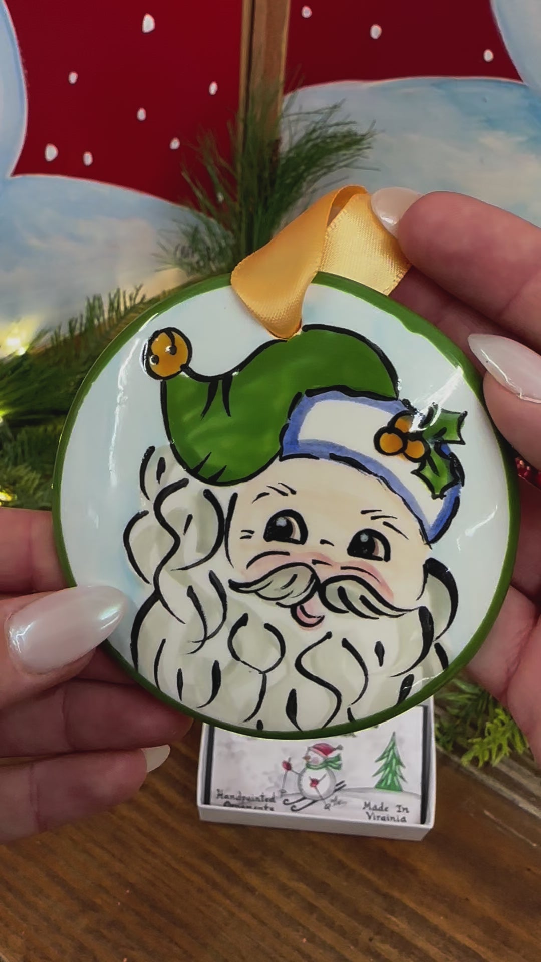 Our hand‑painted Retro Santa – Green ornament features jolly old St. Nick in a playful retro design, dressed in a festive green suit for a fresh take on a classic Christmas look. This charming ornament brings vintage flair and cheerful holiday spirit to your tree.